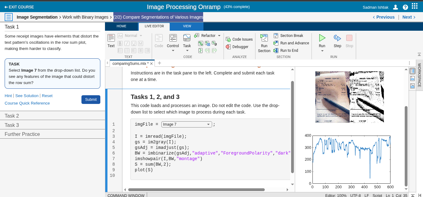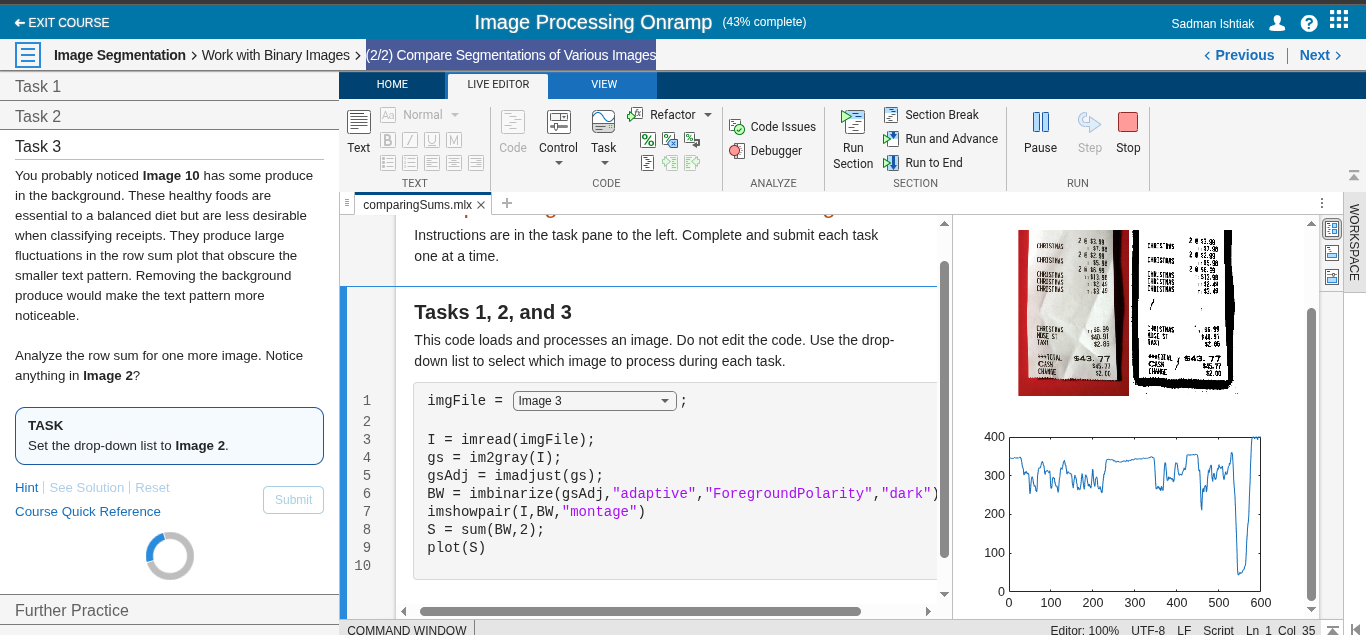 Matlab Image Processing Onramp: Image Segmentation